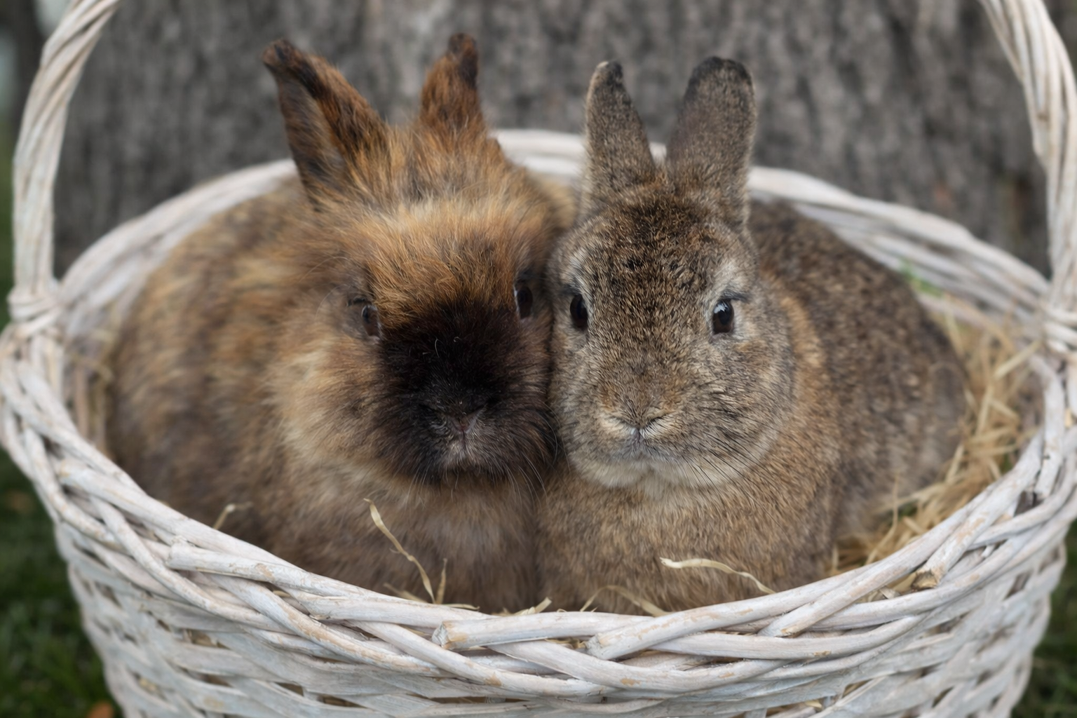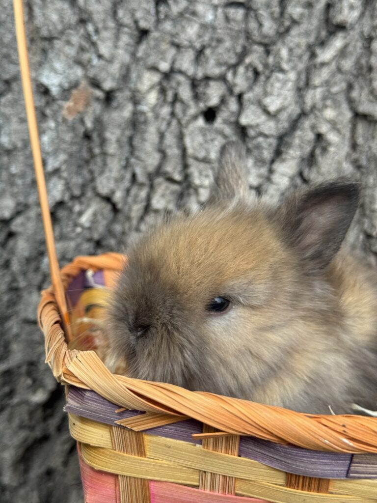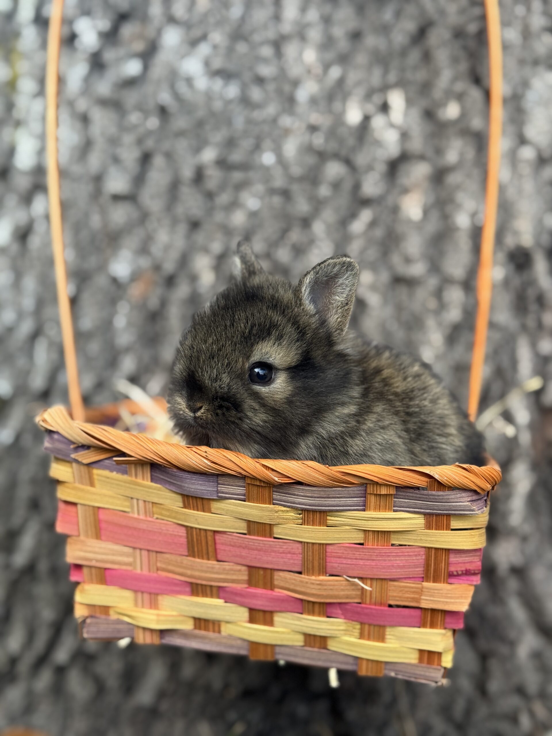 Sunny is a netherland dwarf and Luna is a Lion’s Mane designer bunny. They make the perfect small, fluffy, cuddly bunny. It is our goal to share the joy, cuteness, and love that our bunnies, Sunny and Luna (dad and mom) provide to us. (Luna is on the Left, Sunny on the right).